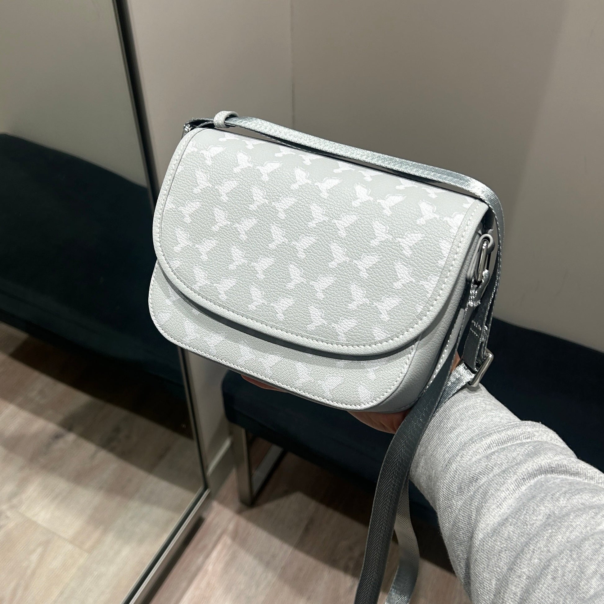 - Can be styled as a clutch or crossbody pouch
